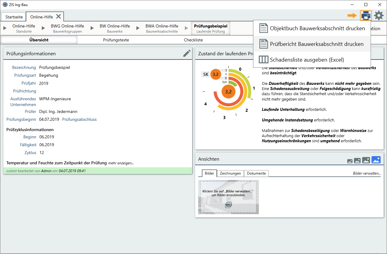 Prüfbericht Bauwerk und Bauwerksabschnitte drucken (nur abgeschlossene Prüfungen)